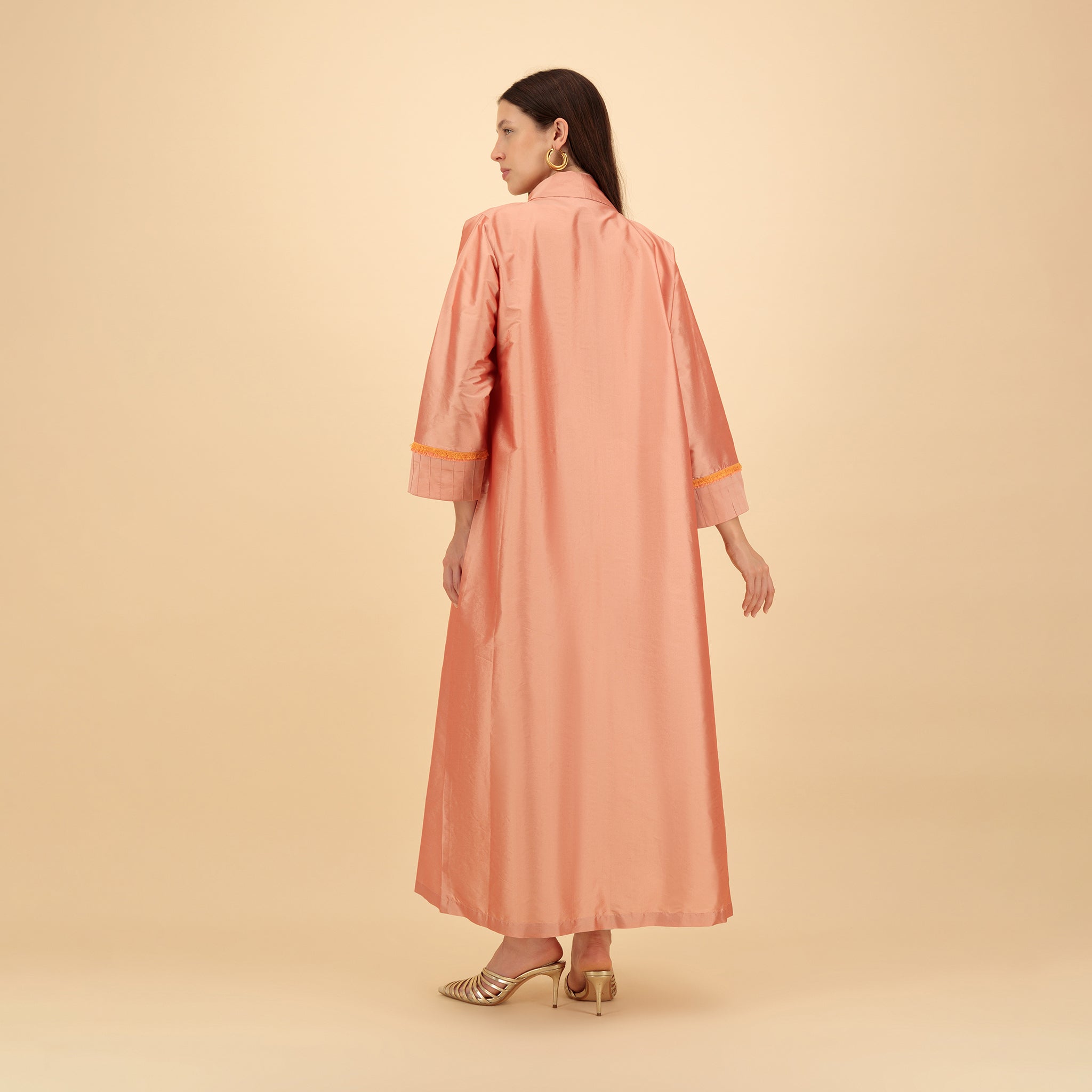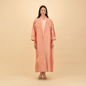 Orange‑Pink Taffeta Abaya with Palm Embroidery