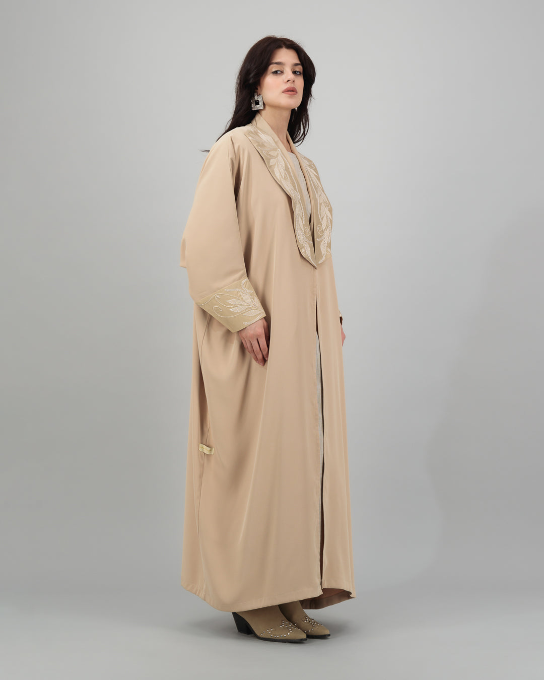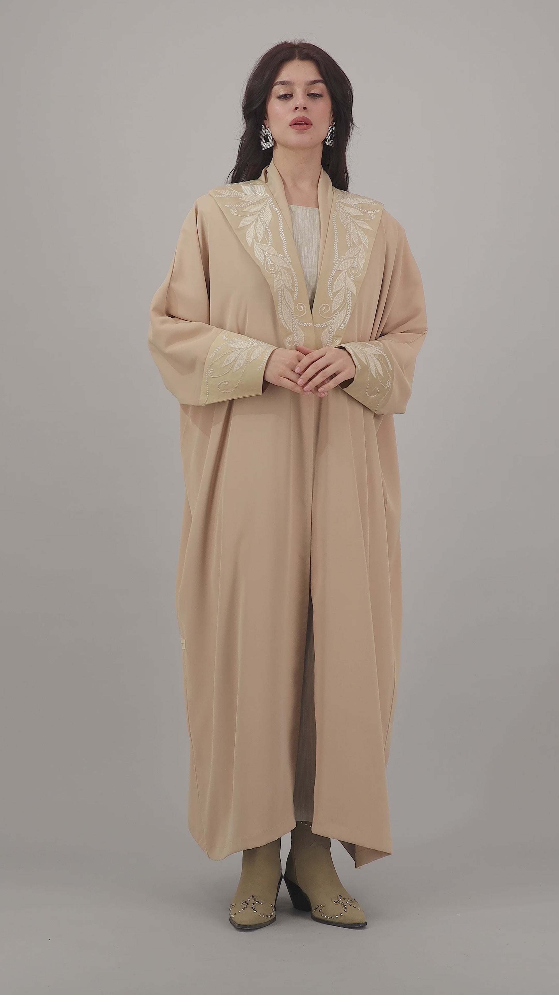 Camel Beige Abaya with Embroidered Collar and Cuffs