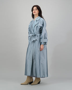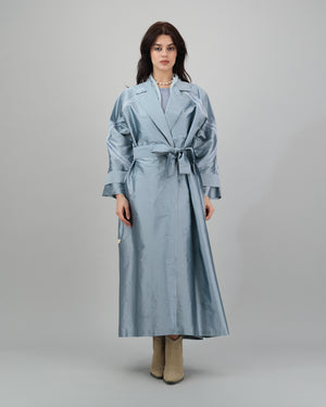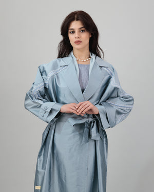 Silky Blue Embroidered Trench Coat