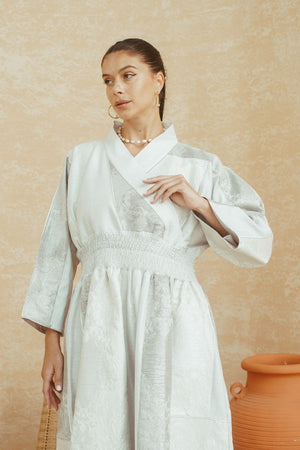 Ivory Brocade Kimono-Wrap Dress
