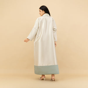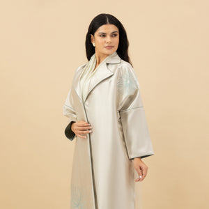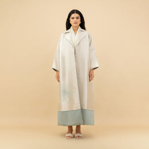 Understated elegance takes form in the Ivory Bloom Embroidered Abaya, a