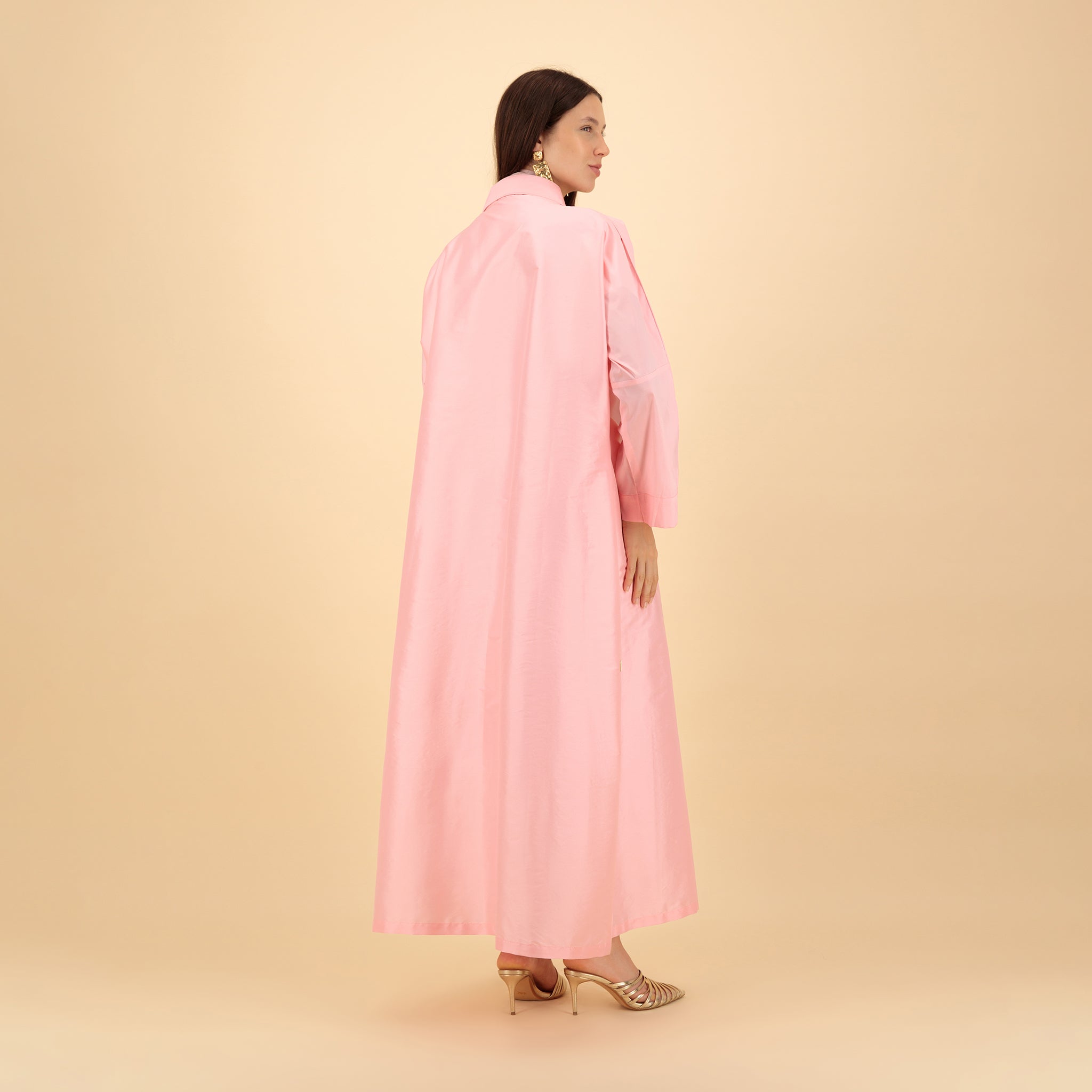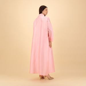 Baby Pink Taffeta Abaya with Floral Embroidery