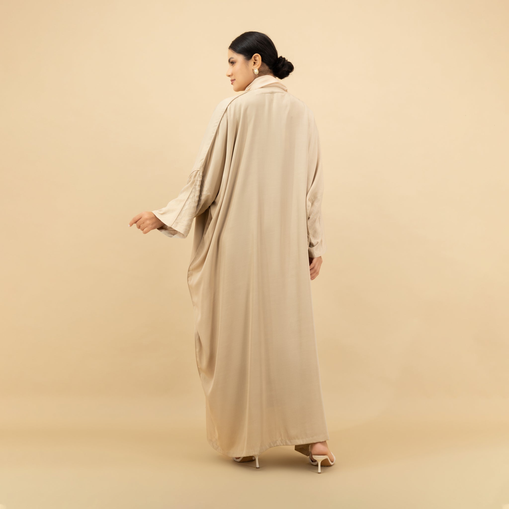Champagne Satin Trim Abaya