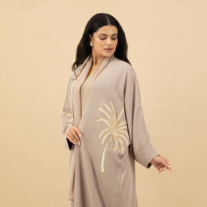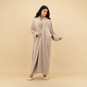 Elegant Taupe Abaya with Gold Palm Embroidery